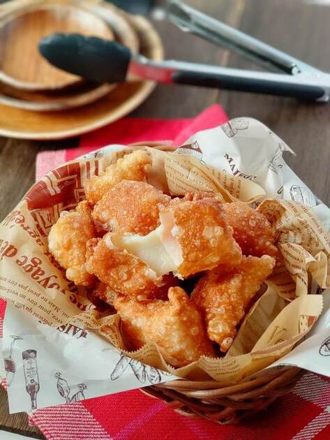 おでんの具としても人気の餅巾着は味つけを変えるとおつまみになります。お餅と一緒にチーズを入れて、コチュジャンをベースにした調味料を合わせて旨辛味に。とろ~りとした食感とこってり味がたまらなくて、お酒と相性バツグンです。