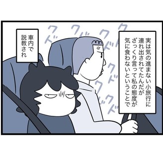 【漫画】夫のグチグチ小言にブチギレ!思わず出た言葉に車中が凍った瞬間【アメリカで本当にあった夫婦喧嘩】