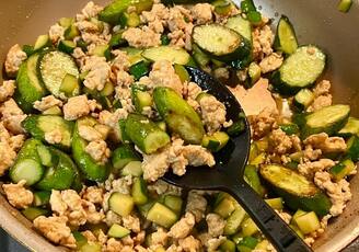 【これめっちゃキュウリ食べられる】焼ききゅうりの肉みそあえ「え、ズッキーニみたい!」新しい…!大量消費もできちゃう