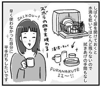 【漫画】「あぁ、食器洗い面倒くさ…(絶望)」からの「4万円でも買ってよかった~!」迷ってた自分に平手打ちしたい