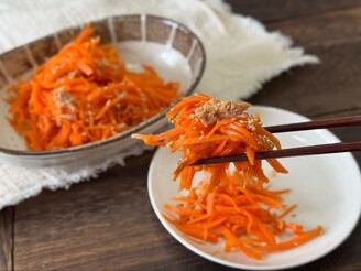 【にんじん2本とツナ缶1個】余ってたら絶対コレ作って!「あの粉」で劇的にうま〜〜!「無限にんじん」に心奪われた♡