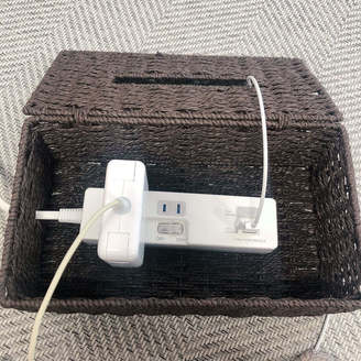 専用ケースは高っ【ニトリ】「ティッシュボックス ライラ」で配線ごちゃごちゃ解消!「取り出し口が秀逸」