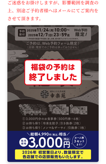 【幸楽苑】福袋の発売日はいつ?2026年は3,000円分お食事券や「冷凍生餃子」引換券も