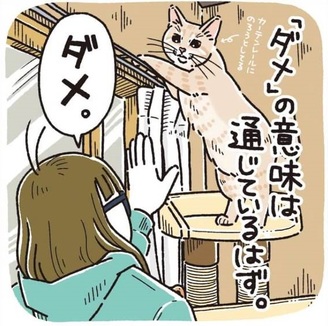 【猫あるある】「いやいや、そんなん反則でしょうが!(泣)」飼い猫に「ダメ」と言ってみたら【SNSで話題の漫画】