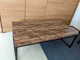 3年愛用「ニトリの中古テーブル」→【ダイソー】220円「リメイクシート」で新品によみがえれ!これはバレないわ…