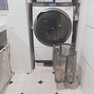 【無印】「ナイロンメッシュランドリーバッグ」が100均ワッツと勝手にコラボ!ゴミ袋ホルダーが「洗濯の救世主」に