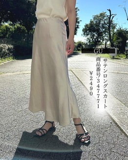 購入する前に絶対注意して(汗)【GU】「サテンロングスカート」気になる腰周りをカバー!「早くも大バズ」人気ロンスカコーデ